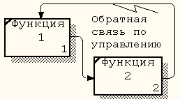 Обратная связь по входу (рис. 9) имеет место тогда, когда выход блока становится входом другого блока с большим доминированием. Такая связь, как правило, используется для описания циклов.