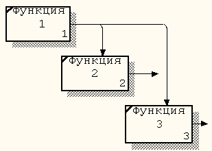 Связь по управлению (рис. 7) возникает тогда, когда выход одного блока служит управляющим воздействием на блок с меньшим доминированием. Данные или объекты выхода вышестоящей функции не меняются в нижестоящей.