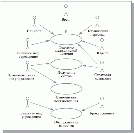 Рис. 12.3. Модель бизнес-прецедентов, составляющих обслуживание пациента