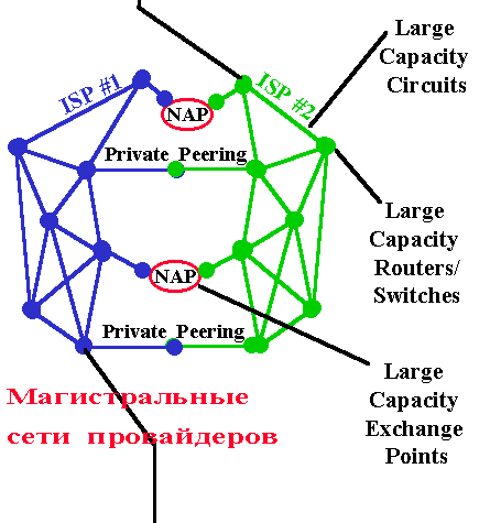 In creating this one web page to describe the "entire Internet", I split the diagram based on the function being performed. I recognize that a company may perform several of these functions. I've included several "leading edge" components as well, such as LMDS for the local loop (This page is intended to be forward-looking). I also recognize that there are many additional details that could be added to this page, but I am trying to adhere to a 90/10 rule. If this page identifies 90% of the mainstream pieces and players, that should be sufficient to convey "the big picture". (The remaining 10% details would probably triple the size & complexity of this one meta-diagram.) I welcome any comments you have to improve this page - especially if I've omitted anything significant. Russ Haynal . http://navigators.com