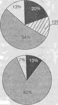 Например, 1998 г. : государственные — 13%, коммерческие — 80%, некоммерческие — 7%, смешанные — 0%.