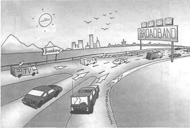Рис. 3.6. Термин «широкополосный доступ» можно пояснить на основе аналогии с транспортными магистралями Чем больше полос в автостраде, тем большее количество машин может проезжать по ней в единицу времени