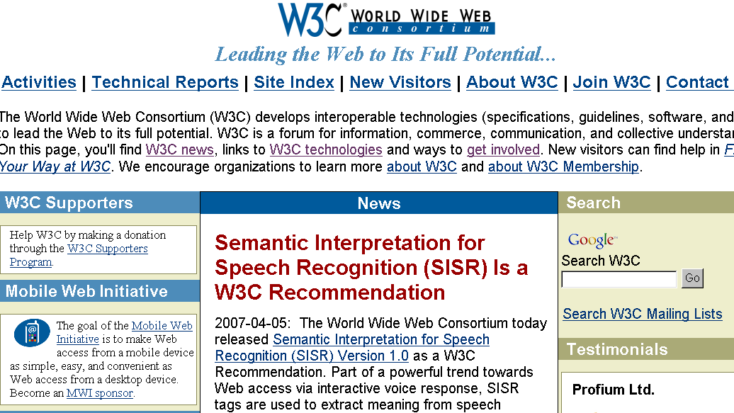 Миссия W3C: «Полностью раскрыть потенциал Всемирной паутины, путём создания протоколов и принципов, гарантирующих долгосрочное развитие Сети».