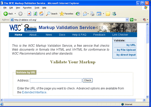 Служба валидации W3C доступна по адресу: http://validator.w3.org . По этому адресу находится страница, показанная на рисунке 1.12 .