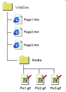 Если будет создана эта папка Media, то относительный URL атрибута src тегов <img/> должен отражать эту структуру каталогов. Например, если Page1.htm выводит изображение Pic1.gif, файл которого расположен в папке Media, то его тег <img/> необходимо записать следующим образом: