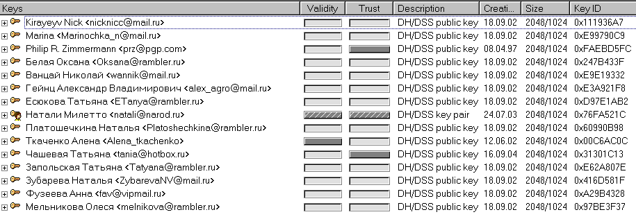 65. Найдите свои связки ключей по адресу: C:/Program Files/Network Associates/PGP/PGP Keyrings.