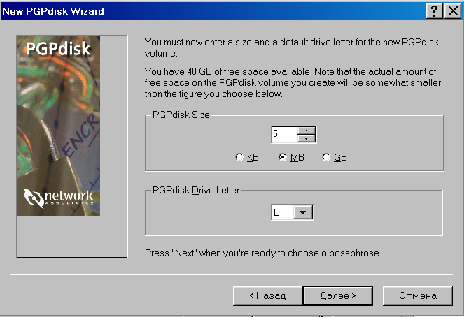 Рис. 49. Окно New PGPdisk Wizard