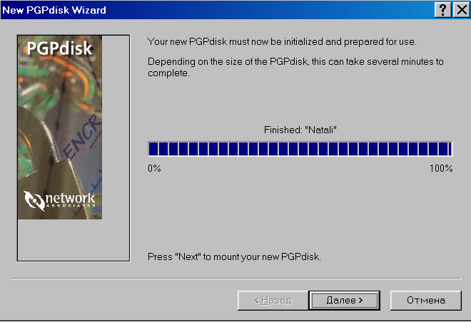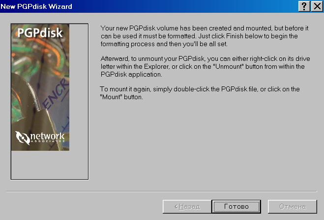 Как только новый диск будет создан, программа PGP автоматически его установит с тем, чтобы вы могли начать его использовать.