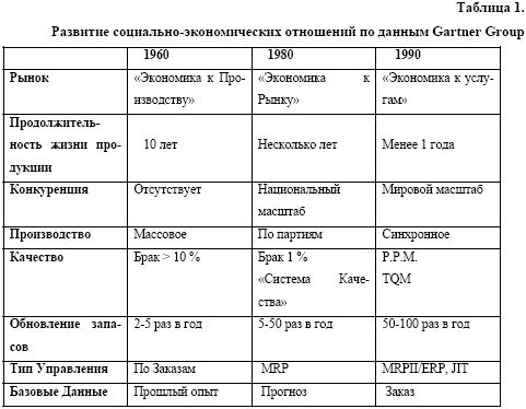 Российские предприятия к 90-м годам по развитию экономических отношений находились на уровне, характерном для западных компаний в 60-е годы. И именно в таком положении они были поставлены не просто в условия конкурентного рынка, а в условия конкуренции с лучшими мировыми производителями. Заслуживает удивления и восхищения тот факт, что многие из них не просто выжили, но и научились эффективно работать в новых условиях.